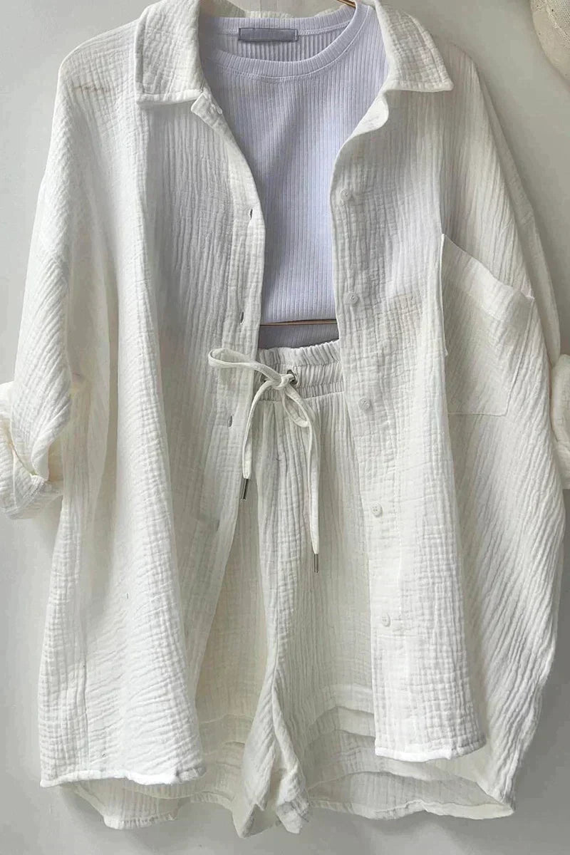 ✔️ La blouse à manches longues est parfaite pour les soirées plus fraîches, tandis que le short vous garde au frais durant les journées chaudes.