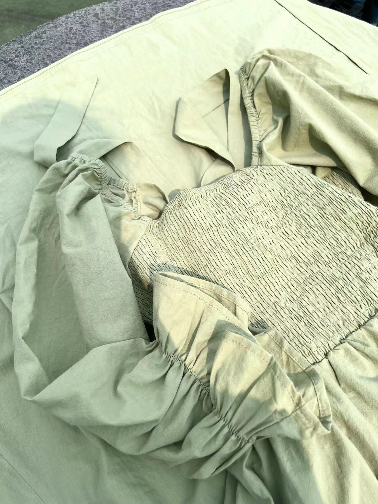 Ses manches lanternes ondulées apportent une touche romantique, tandis que sa coupe permet plusieurs styles : épaules dénudées, style portefeuille ou porté classique. Sa longueur midi assure une allure à la fois élégante et décontractée, parfaite pour toutes les occasions.